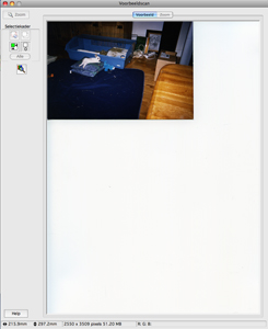 Scannen op een hoge resolutie kan best wat tijd kosten. Om zeker te weten dat je foto mooi gescand wordt maak je eerst een voorbeeldscan. Dit doe je door op de knop ‘Voorbeeldscan’ te drukken. Er opent zich nu een nieuw venster met de afbeelding zoals die op dit moment gescand zou worden. Kijk of de belichting goed is en of de foto goed recht ligt. Als dit het geval is klik je het venster weg en druk je op ‘Scan’ in het hoofdmenu.