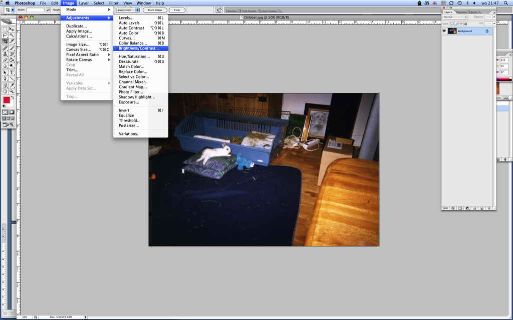 Als je afbeelding gescand is dan open je die in een fotobewerkingsprogramma, bijvoorbeeld Adobe Photoshop. Hier kun je je foto verder bewerken. Soms kan het zijn dat gescande afbeeldingen wat donkerder zijn dan normaal. Dit kun je in het fotobewerkingsprogramma aanpassen door gebruik te maken van Helderheid/Contrast in het Modus-menu.