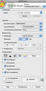 Bij iedere scanner wordt een gratis scanprogramma geleverd. In dit voorbeeld maken we gebruik van een Epson scanner, het programma dat hierbij hoort heet EPSON Scan. Hoewel niet alle programma’s er hetzelfde uitzien, kun je aan de hand van dit voorbeeld eenvoudig ook andere programma’s gebruiken.