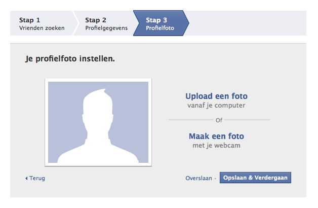 Tot slot kun je een profielfoto aan je profiel toevoegen. Zoals je eerder hebt kunnen zien, geef je Facebook met het uploaden van die foto het recht om de foto ook te gebruiken. Dit zal waarschijnlijk niet gebeuren, maar het kan wel verstandig zijn om in ieder geval een klein beetje vooruit te denken als je de foto plaatst.