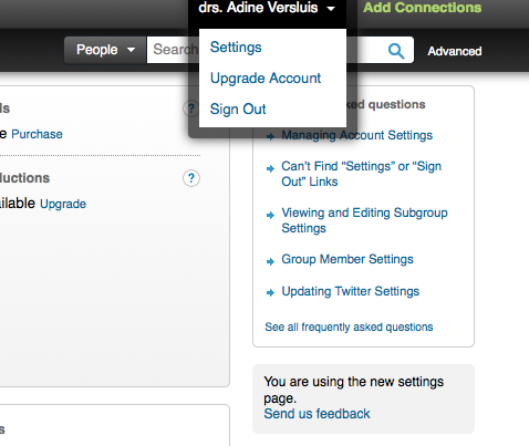 Log in op je account. Je ziet nu rechts bovenin je naam staan. Als je daar met je muis op gaat staan, verschijnt een uitrolmenu. Klik daar op Instellingen of Settings, afhankelijk van de versie die je gebruikt.