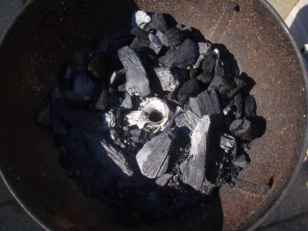 Jouw werk zit erop. Ga niet als een idioot blazen, wapperen of extra lucifers in de kolen gooien, dat is nergens voor nodig. Haal even een biertje, of check je mail want je hebt er geen omkijken meer naar. Binnen 10 tot 15 minuten zijn de kolen mooi gloeiend rood en kookklaar.