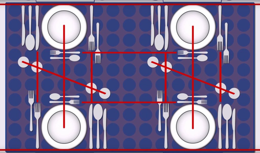 Wil je de tafel echt goed dekken? Zorg er dan voor dat alles recht tegen over elkaar ligt.