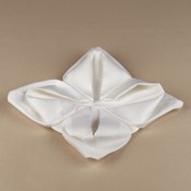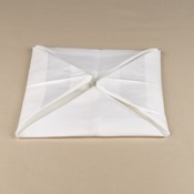 Zodra alle toppen zijn gevouwen blijft het zitten als een vierkant, ongeveer 1/4 van de grootte van het uitgevouwen servet.