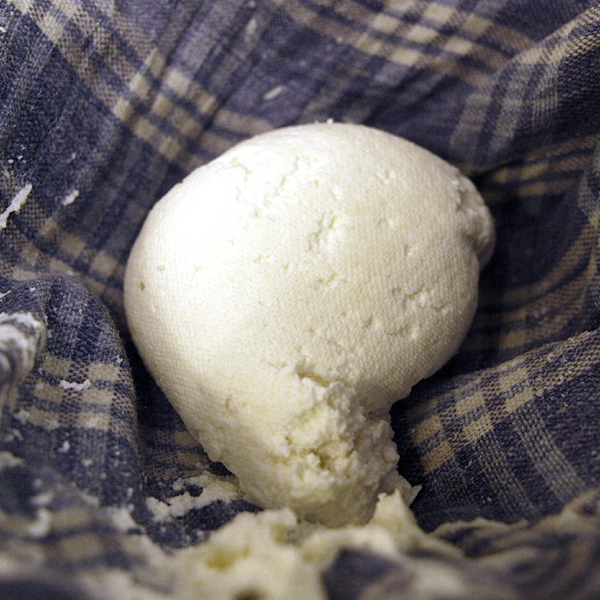 De vloeistof die zich afscheidt heet wei. Dat wordt veel gebruikt in vruchtensappen en ijs, kortom: je kunt het drinken. Scheid de wei van de wrongel door het in een schone theedoek te scheppen en voorzichtig uit te persen. Wil je er kruiden aan toevoegen, dan is dit het moment. Probeer eens gedroogde bieslook of franse kruiden.