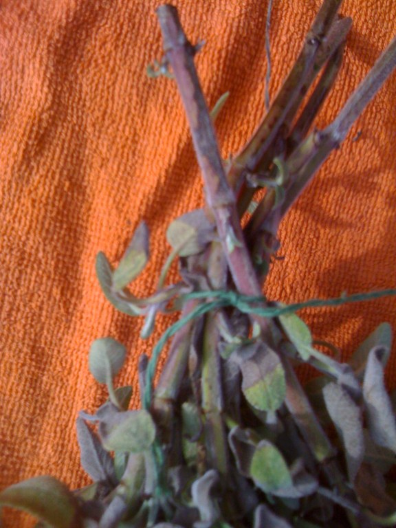 - 4 of 5 takken kruiden naar keuze. Salie is het meest gebruikt maar probeer ook rozemarijn, tijm etc.