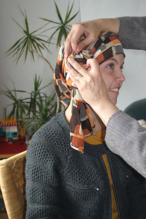 Vanzelfsprekend kun je elke doek gebruiken die je wilt. Toch raden Fatima en Manon aan om katoenen doeken te gebruiken. Manon: ‘Synthetisch materiaal gaat eerder kriebelen en zweten op je hoofd. Het gebruik van ademend materiaal is daarbij ook beter voor je hoofdhuid.’