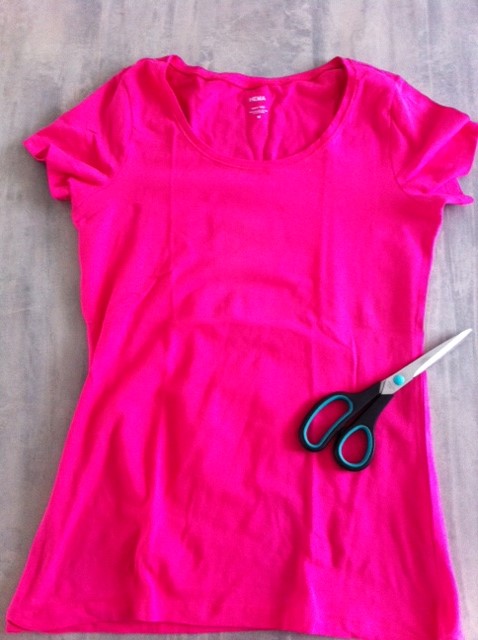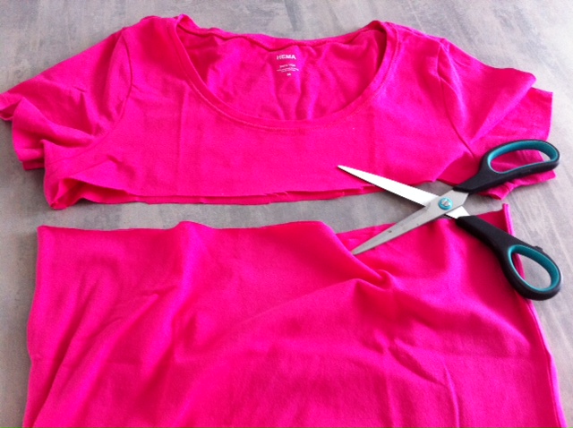 Knip de bovenkant van het shirtje zo recht mogelijk af, ongeveer 2 tot 5 centimeter vanaf de okselnaad.