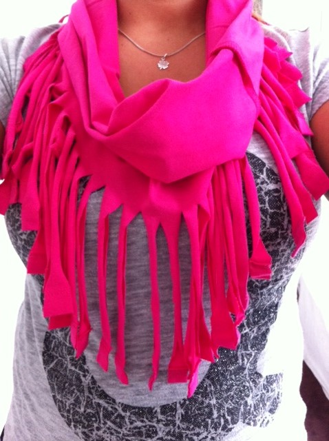 Nu is je zelfgemaakte sjaal klaar en kun je hem dragen!