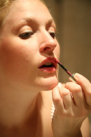 Ook nog zin in een kleurtje op je lippen? Begin dan door je lippen in te smeren met een niet al te vette lippenbalsem. Een dikke laag is niet nodig; de balsem is alleen nodig om je lippen tegen de lippenstift te beschermen en zorgen voor een gladde, strakke ondergrond. Pak vervolgens je lippenpenseel en breng hier wat lippenstift op aan. Zet het lippenpenseel in het midden op je onderlip en begin van binnen naar buiten te werken. Kleur hierna ook je bovenlip voorzichtig in. Ook hier kun je kleine vlekjes of uitschieters wegwerken met behulp van een wattenstaafje en wat make-up remover.