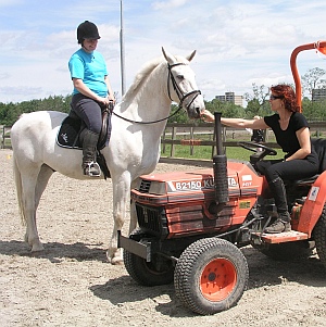 Je paard, pony of veulen luistert goed naar je als hij naast je loopt aan een halster of hoofdstel. Hij staat stil als jij stil staat. Dan ben je klaar om eens te gaan kijken wat hij van de buitenwereld vindt. Het beste is om een paard van jongs af aan al mee te nemen van zijn bekende terrein af. Zo went hij snel aan nieuwe situaties. Stel hem bloot aan zoveel mogelijk verschillende dingen, van druk verkeer en landbouwmachines tot smalle gangetjes, tunnels en viaducten, lawaai, veel mensen, noem maar op. Je kunt er in de bak al mee beginnen door eens een zeil of paraplu neer te leggen, ballonnen op te hangen, een tractor of brommer neer te zetten.