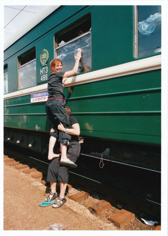 “Gelukkig zitten in mijn coupé vier landgenoten met wie ik het direct goed kan vinden. Onze rechterburen zijn twee jonge Chilenen en twee coupés verder zitten twee uitgelaten Australische meiden. De coupé aan het einde van de gang is bezet door een chagrijnige Rus met een net zo nors kijkende vrouw en een Mongoolse monnik met vredige uitstraling. Mijn overige rijtuiggenoten zijn Mongoolse handelaren. Het klikt goed in onze coupé, we zitten qua humor op dezelfde golflengte en daarmee hebben we mazzel, zo vinden we met z’n allen. In ons rijtuig zitten nauwelijks toeristen, we zijn omringd door handelaren die dag en nacht slepen met spullen. Coupés puilen uit met lakpumps, gympen, slippers, plafondlampen, paraplu’s, cosmetica, vooroorlogse mode, tasjes, dekens waarop prints van valse tijgers en panters, medicijnen en sigaretten. De Mongoolse kooplui zijn constant in de weer om hun goederen te verstoppen en ze vervolgens weer te verplaatsen. Tussen de bedrijven door worden er spullen verhandeld. Overal: op de gang, in de coupés, uit het raam en op de perrons." -