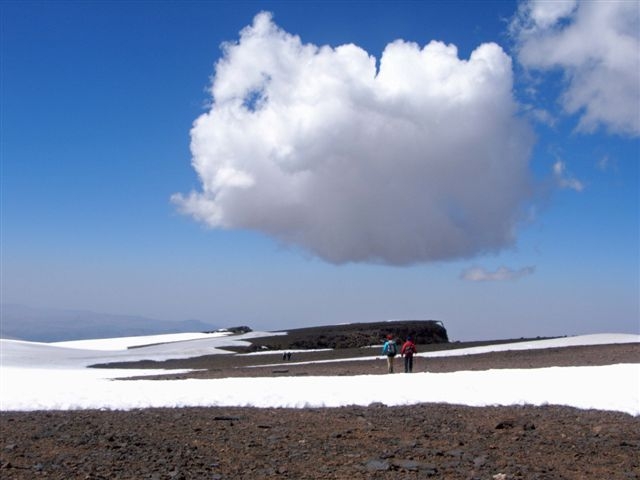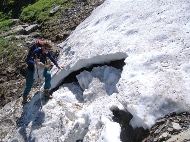 En een wolkenloze hemel met een stralende zon is dan wel het ideaal, maar sneeuwblindheid en forse verbranding zijn door de sterke UV-straling in de bergen geen uitzondering. Flink smeren dus en doe een petje op en draag een zonnebril. Een stralende zon kan volgens Myra ook het verloop van een wandeltocht nadelig beinvloeden. "Op een bloedhete dag kan een lang sneeuwveld dat je nog aan het einde van je tocht moet trotseren dankzij de papperige en zachte sneeuw een langdurige en vermoeiende exercitie worden. En ook het gevaar van steenslag is groter bij veel zonneschijn.