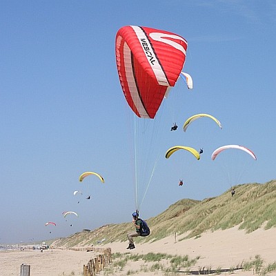 In de loop van je vliegopleiding ga je verschillende schermen uitproberen. Vraag eens om een DHV 1-2 scherm en probeer het verschil te voelen. Vind je de betere wendbaarheid prettig? Voel je je nog veilig met dit scherm? Of is het te onrustig vliegen naar jouw smaak? De keus voor een scherm is heel persoonlijk. Probeer ook verschillende merken uit. Het harnas is eveneens van belang voor de vliegeigenschappen van je scherm. Vraag je instructeur welk harnas bij jou en je scherm past. Niet iedere combinatie is geschikt en kan zelfs gevaar opleveren.