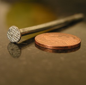 Elektrische stroom is niets meer dan een stroom van kleine deeltjes die elektronen heten. De min-pool van een batterij levert die elektronen, de plus-pool neemt ze weer op en stuurt ze terug naar de min-pool. Zo ontstaat een eindeloze stroom elektronen. Hoe snel de elektronen stromen hangt ervan af hoe graag de min-pool ze afgeeft en hoe graag de plus-pool ze weer opneemt. Dat noemen we spanning en drukken we uit in Volt. Voor de biobatterij is koper een prima elektronen-opnemer. We nemen dus een koperen muntje of een stukje koperdraad als plus-pool. Een gegalvaniseerde spijker (die heeft een laagje zink eromheen) is een goede elektronen-bron. Dat wordt onze min-pool. Prik ieder aan een kant van de citroen zodat ze elkaar niet raken en een stukje uitsteken.