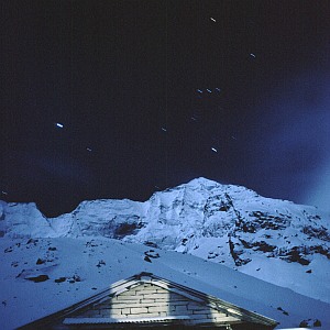 Maar korter geeft ook al mooie resultaten. Richt de camera naar het noorden. Zoek een mooie voorgrond met bomen of een huis. Het resultaat is dat de sterren cirkelvormige strepen trekken, de zogenaamde stersporen.